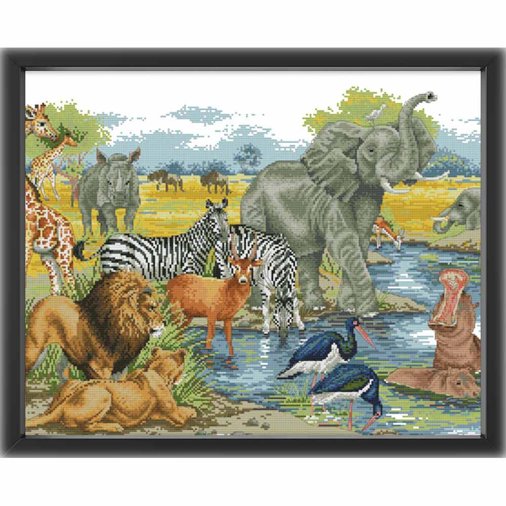 Kreuzstich - Safaripark Wildnis | 60x45 cm - Diy - Fadenkunst