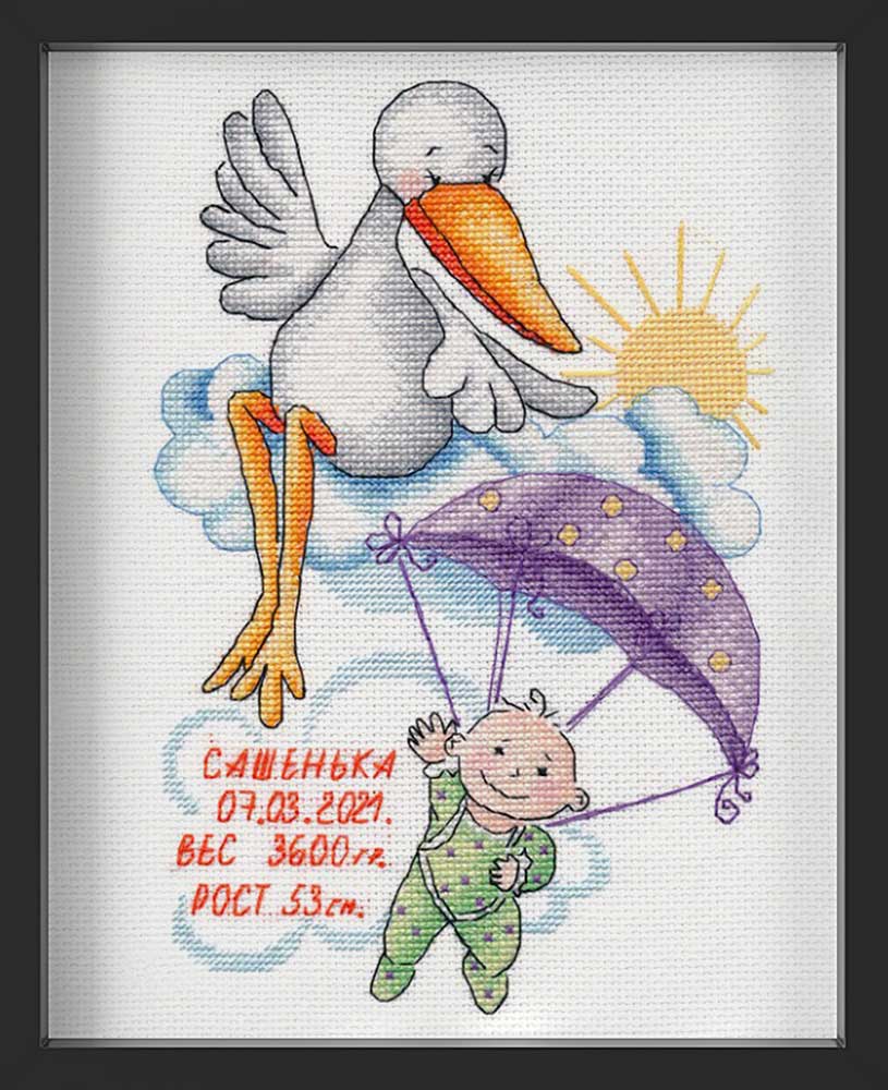 Kreuzstich - Baby Geburt Junge | 16x24 cm