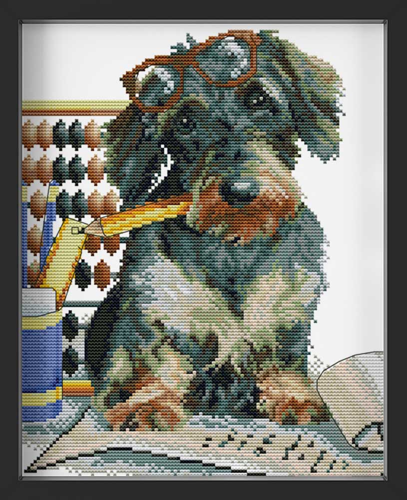 Kreuzstich - Hund Dackel  | 35x35 cm - Diy - Fadenkunst