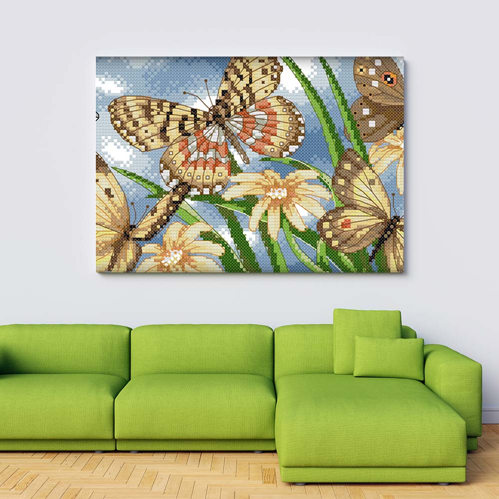Kreuzstich - Schmetterling an Blume | 30x20 cm - Diy - Fadenkunst