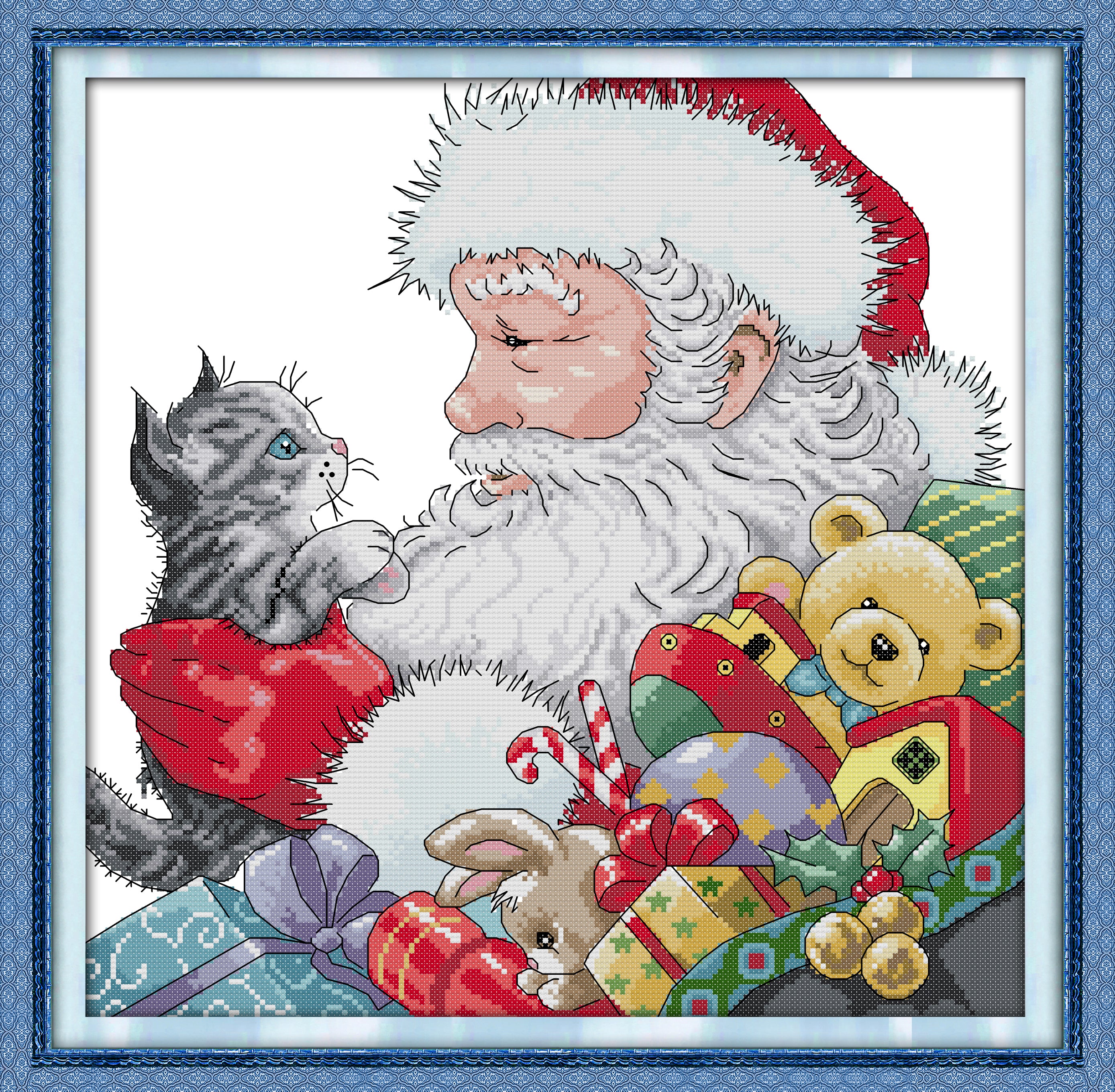 Kreuzstich | Weihnachtsmann mit kätzchen  - 18 x  18cm