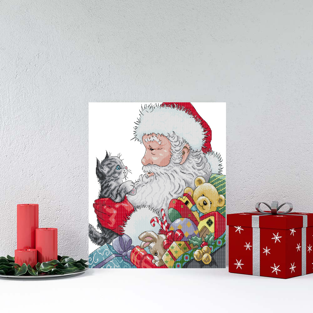 Kreuzstich | Weihnachtsmann mit kätzchen - 18 x 18cm