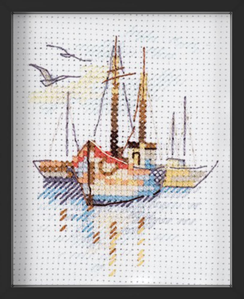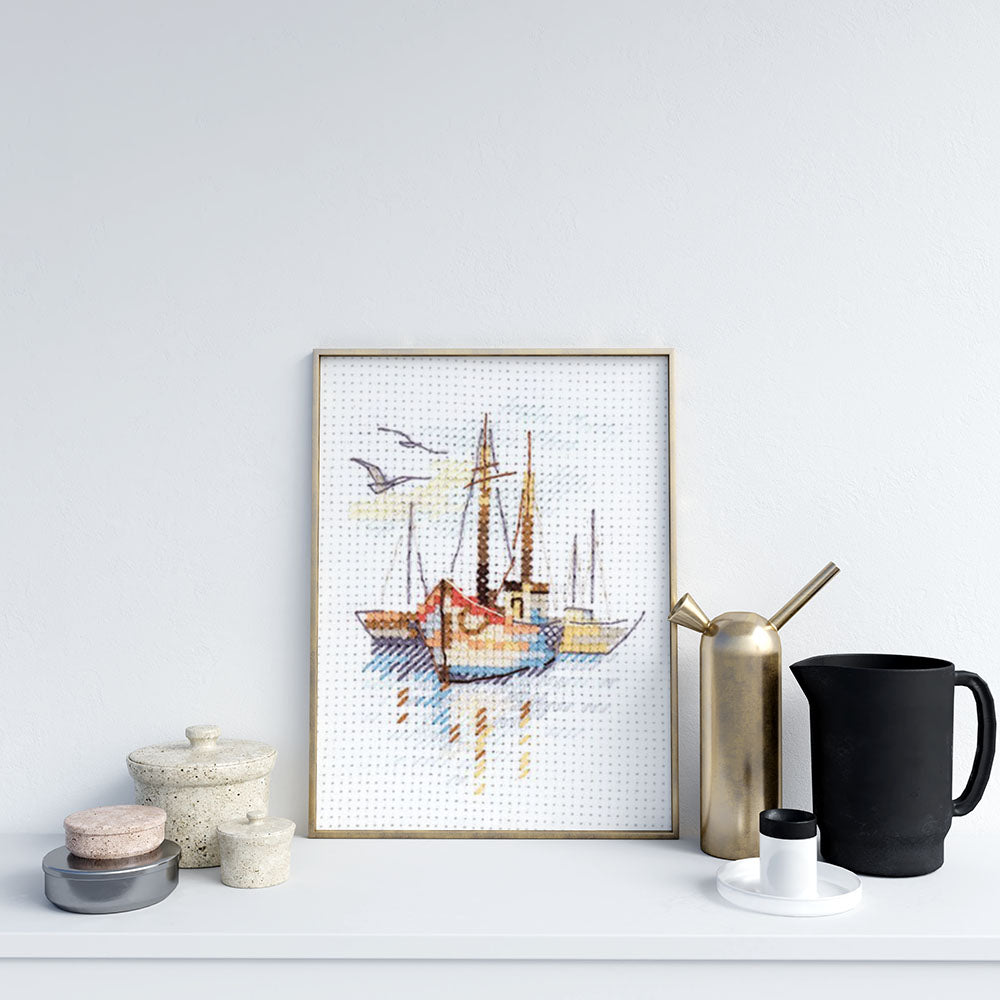 Kreuzstich - Boote in der Morgendämmerung | 10x10 cm - Diy - Fadenkunst