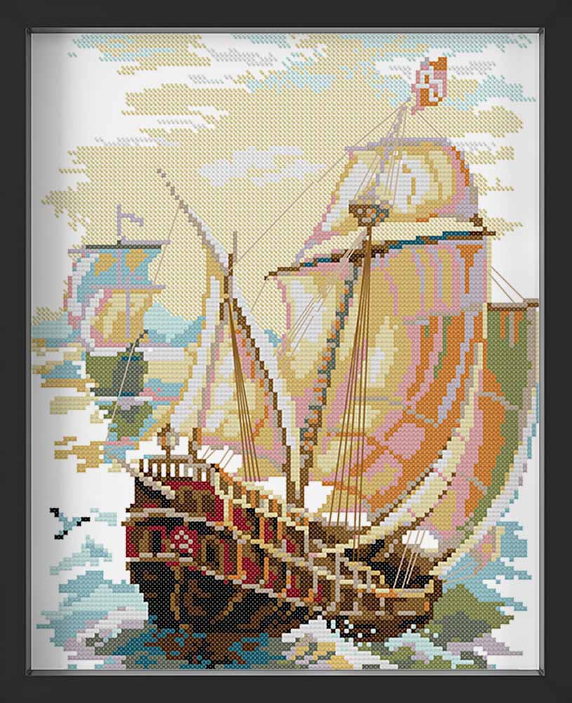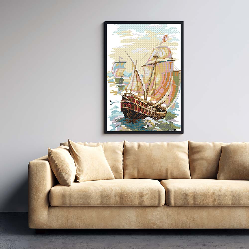 Kreuzstich - großes Segelschiff | 30x40 cm