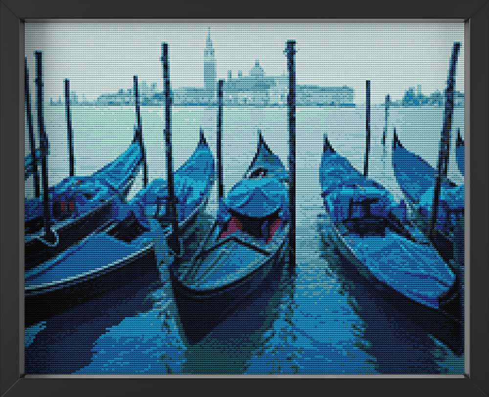 Kreuzstich -  kleine Boote auf Wasser | 60x40 - Diy - Fadenkunst