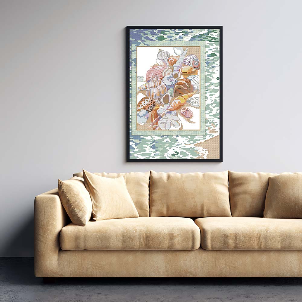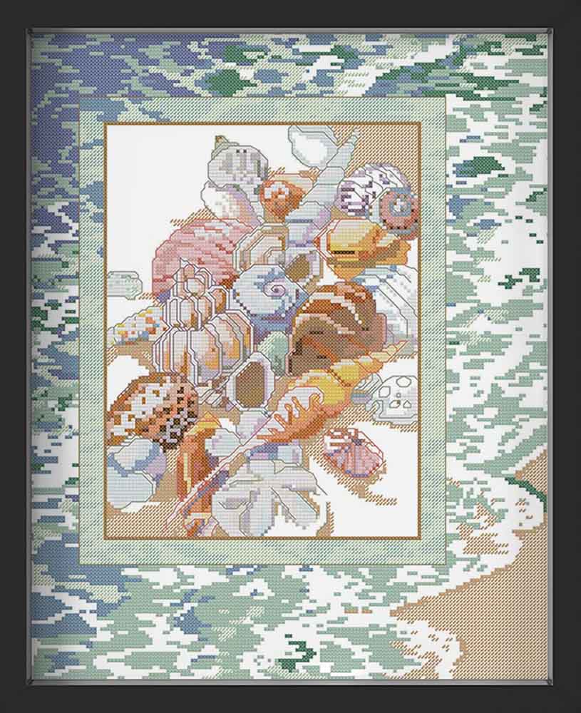 Kreuzstich - Muscheln und Meer | 30x40 cm - Diy - Fadenkunst