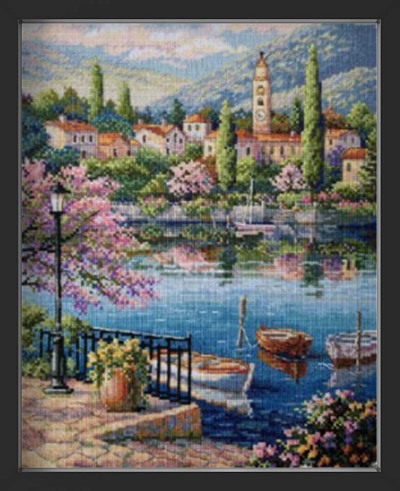 Kreuzstich - Stadt am Fluss | 22x29 cm
