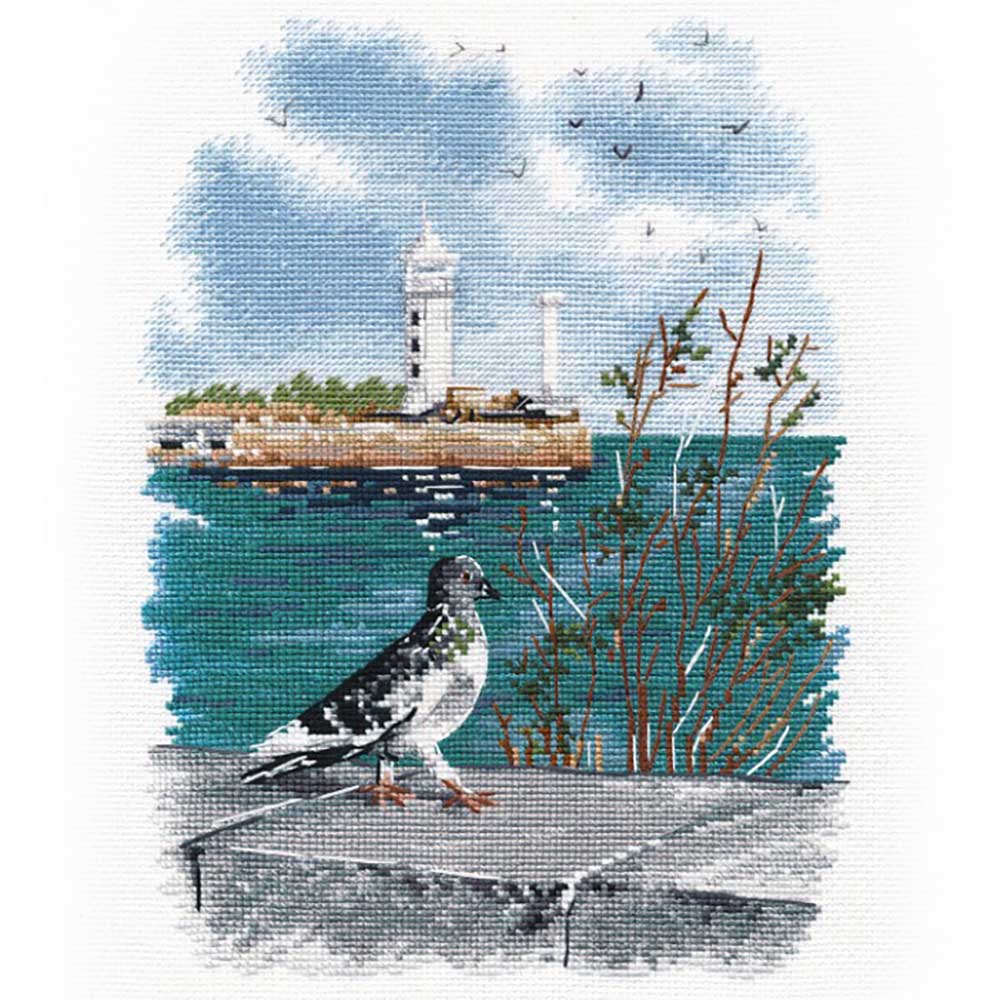 Kreuzstich - Vogel an der Wasserfront | 18x24 cm