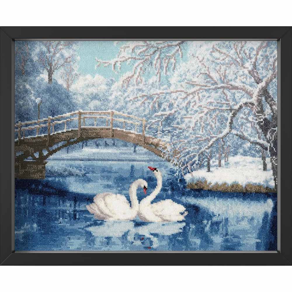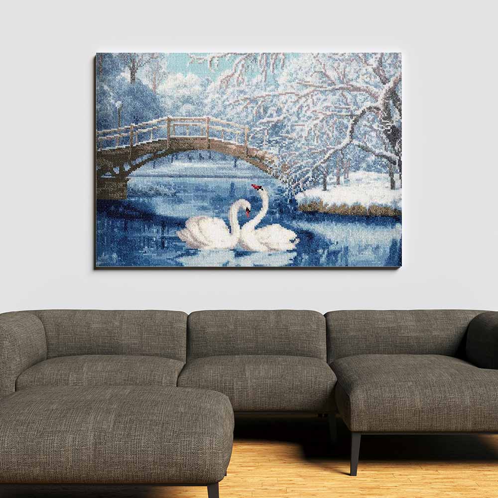 Kreuzstich - Weiße Schwäne | 30x45 cm - Diy - Fadenkunst