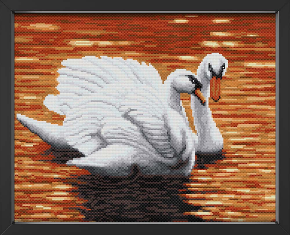 Kreuzstich - Zwei Schwäne im Wasser | 45x30 cm - Diy - Fadenkunst