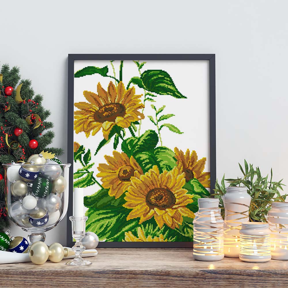 Kreuzstich - schöne Sonnenblumen | 40x70 cm - Diy - Fadenkunst