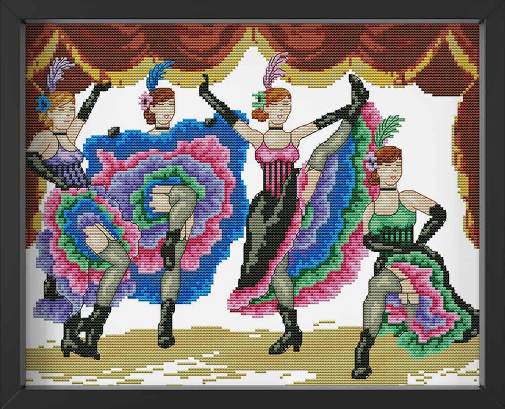 Kreuzstich -  Frauen mit tollen Kleidern tanzen | 40x30 cm - Diy - Fadenkunst