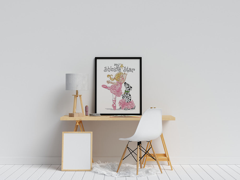 Kreuzstich - Mädchen tanzt Ballette mit Dalmatiner | 20x30 cm - Diy - Fadenkunst