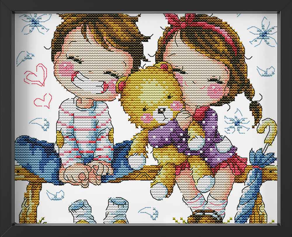 Kreuzstich - Kinder mit Teddybär | 25x25 cm