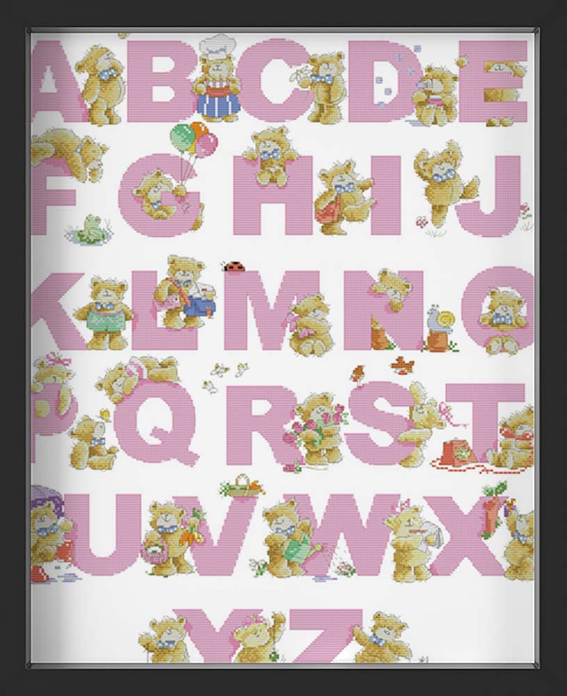 Kreuzstich - Teddy ABC rosa | 60x60 cm