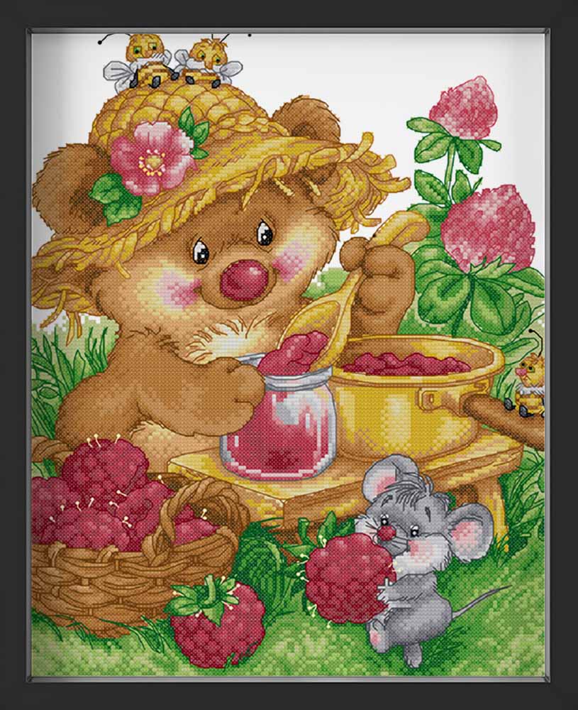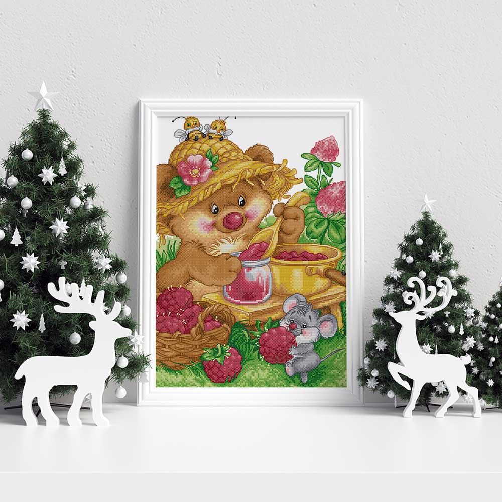 Kreuzstich - Teddy am gärtnern | 30x40 cm - Diy - Fadenkunst