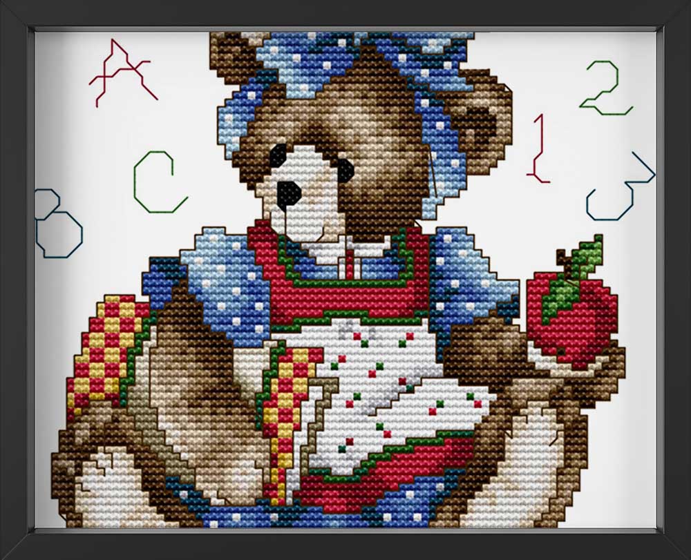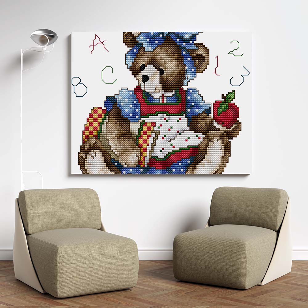Kreuzstich - Teddy im Kleid ABC | 20x20 cm - Diy - Fadenkunst