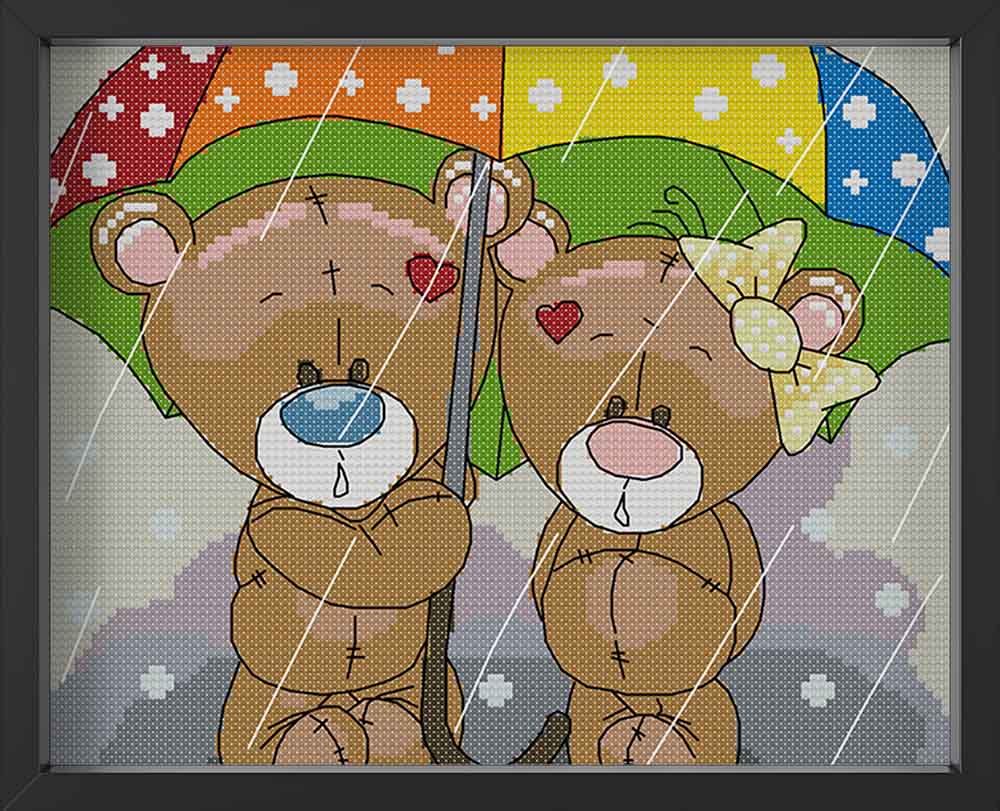 Kreuzstich -  Teddy mit Regen | 30x30 cm - Diy - Fadenkunst