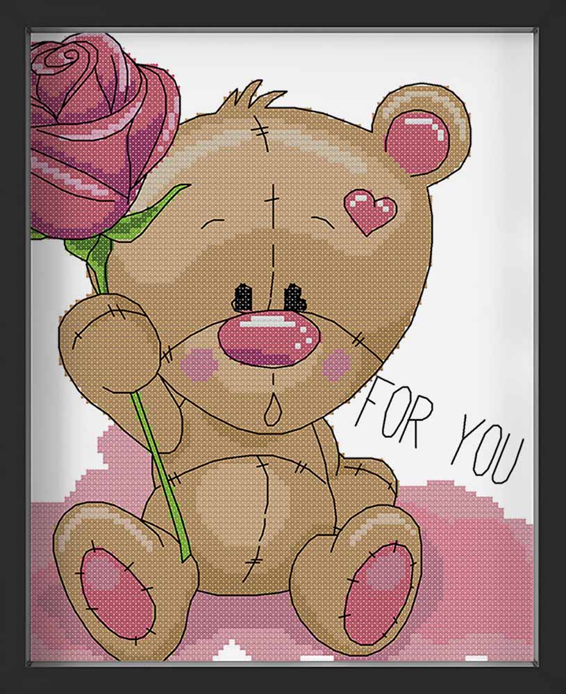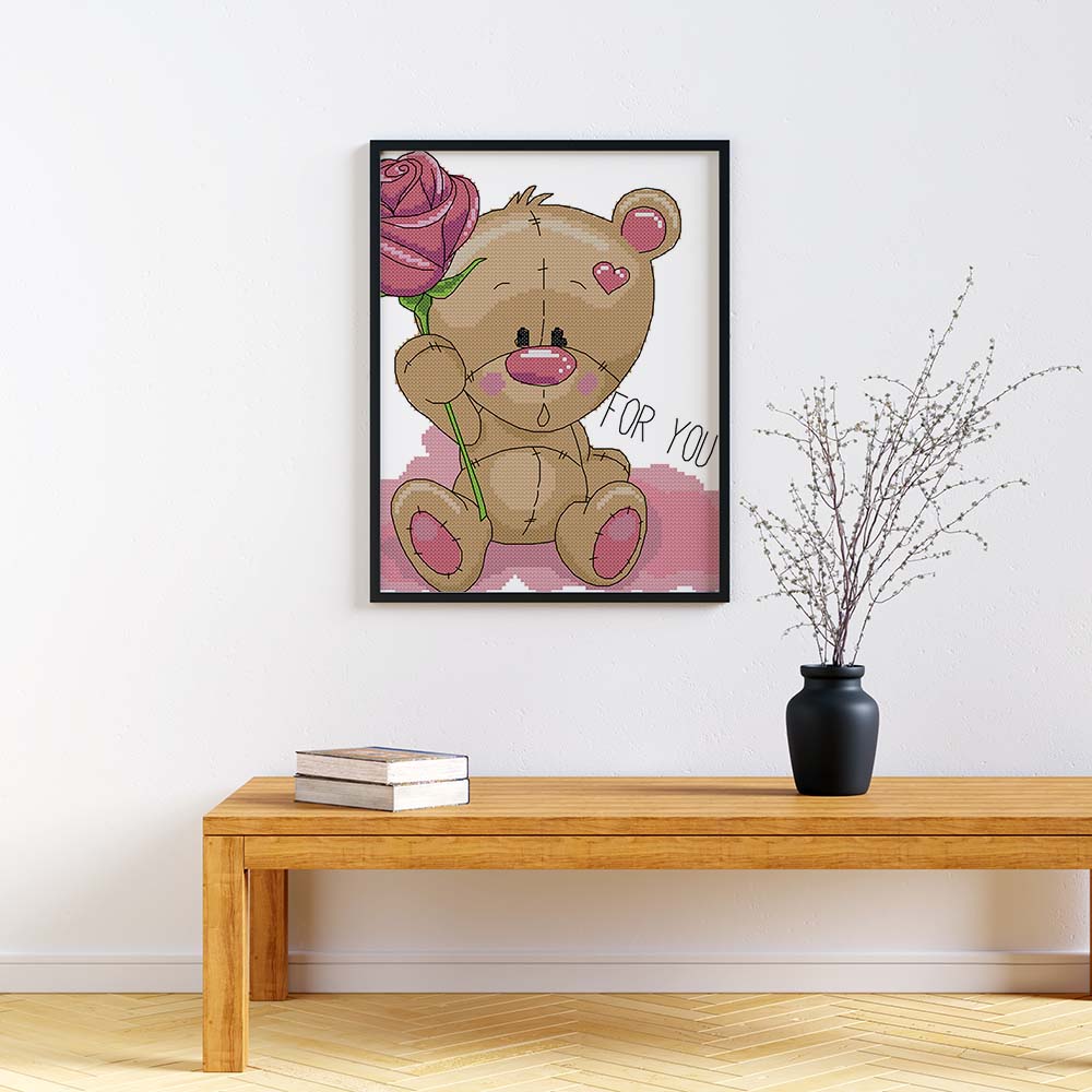 Kreuzstich -  Teddy mit Rose | 30x30 cm - Diy - Fadenkunst