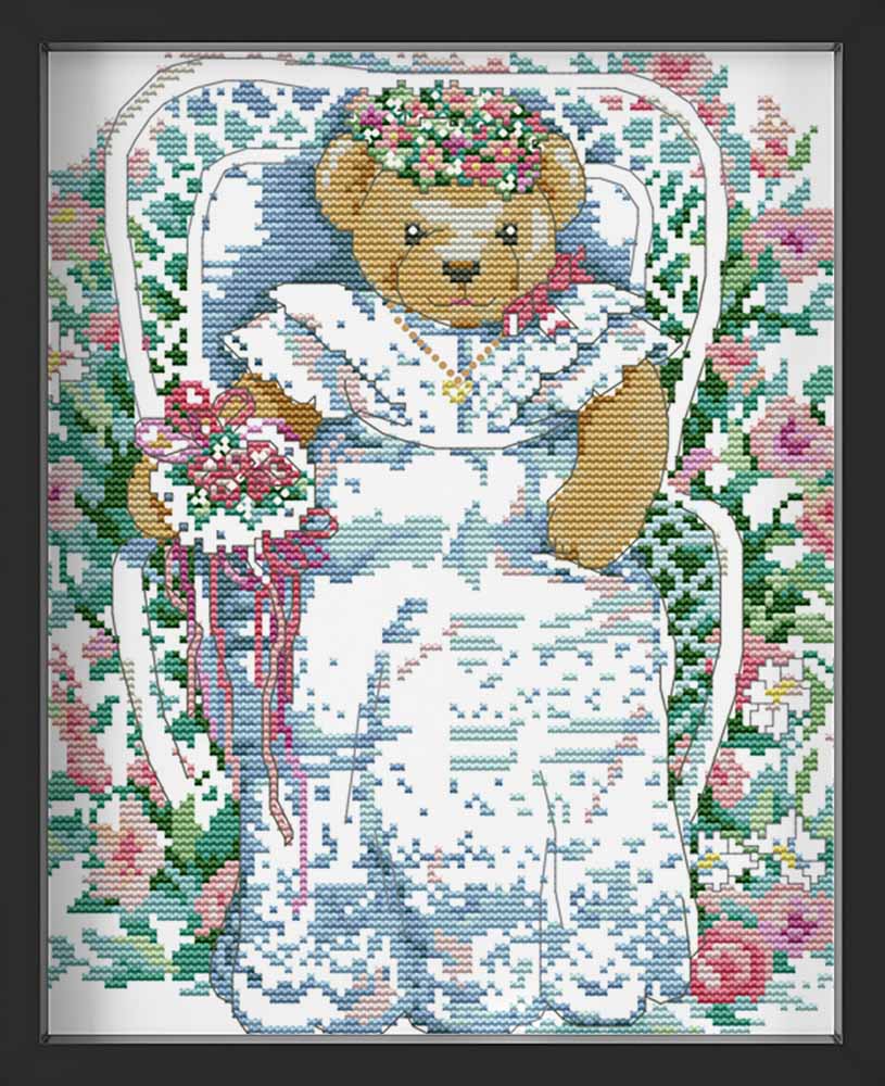 Kreuzstich - Teddys im Brautkleid | 30x30 cm
