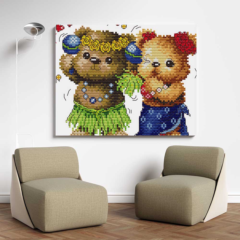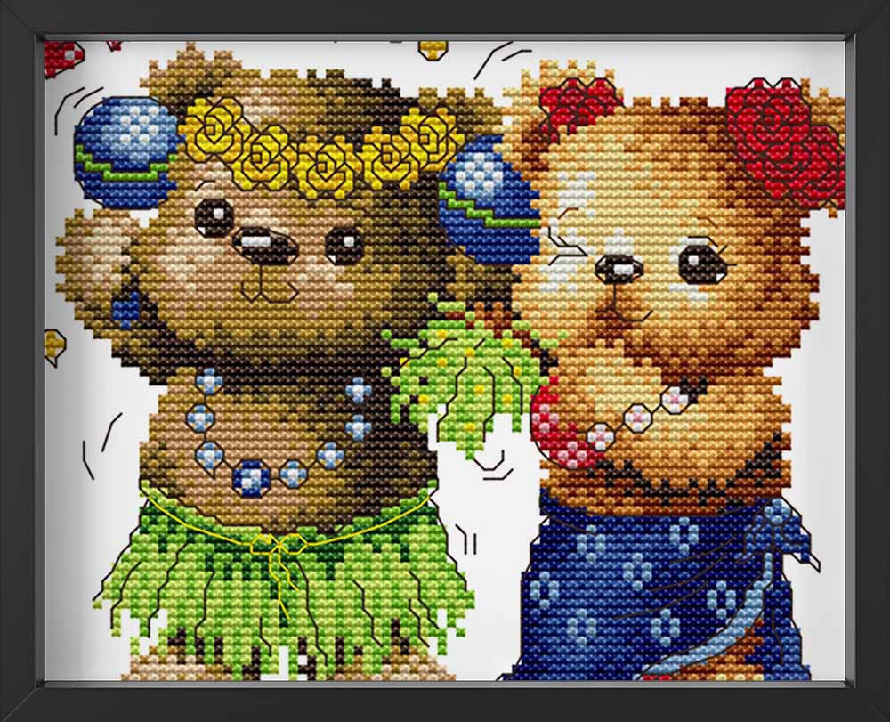 Kreuzstich - zwei Teddys am tanzen | 20x20 cm - Diy - Fadenkunst