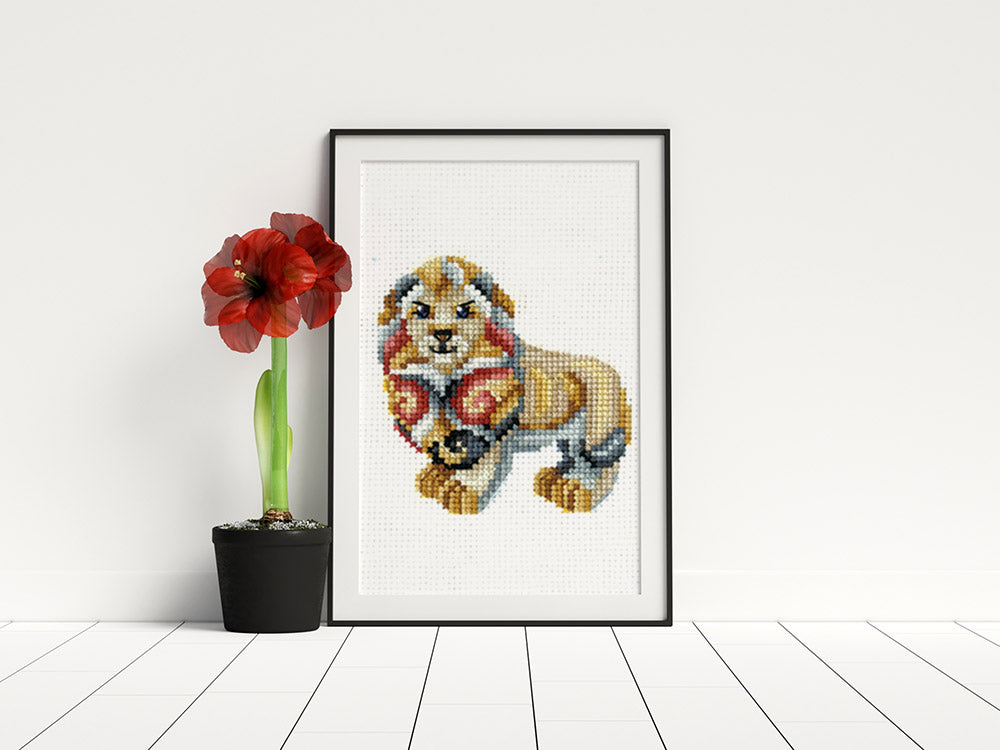 Kreuzstich - Figuren Löwe | 15x15 cm - Diy - Fadenkunst