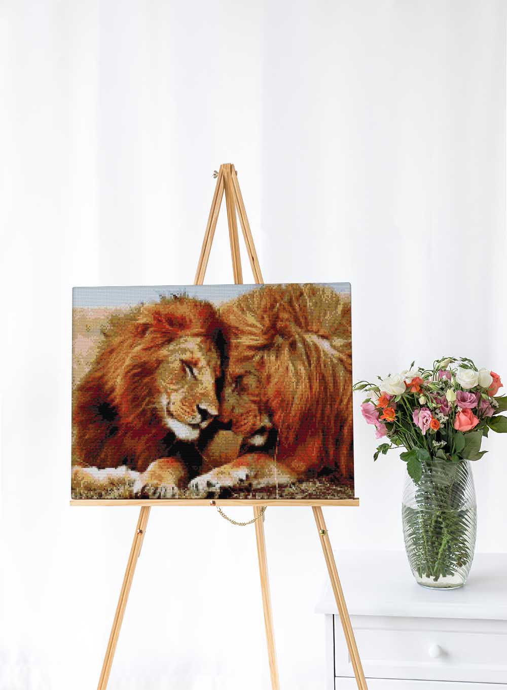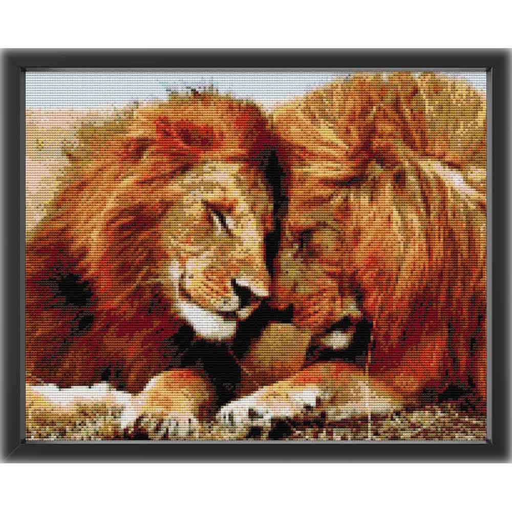 Kreuzstich - Kuschelige Löwen | 45x35 cm - Diy - Fadenkunst