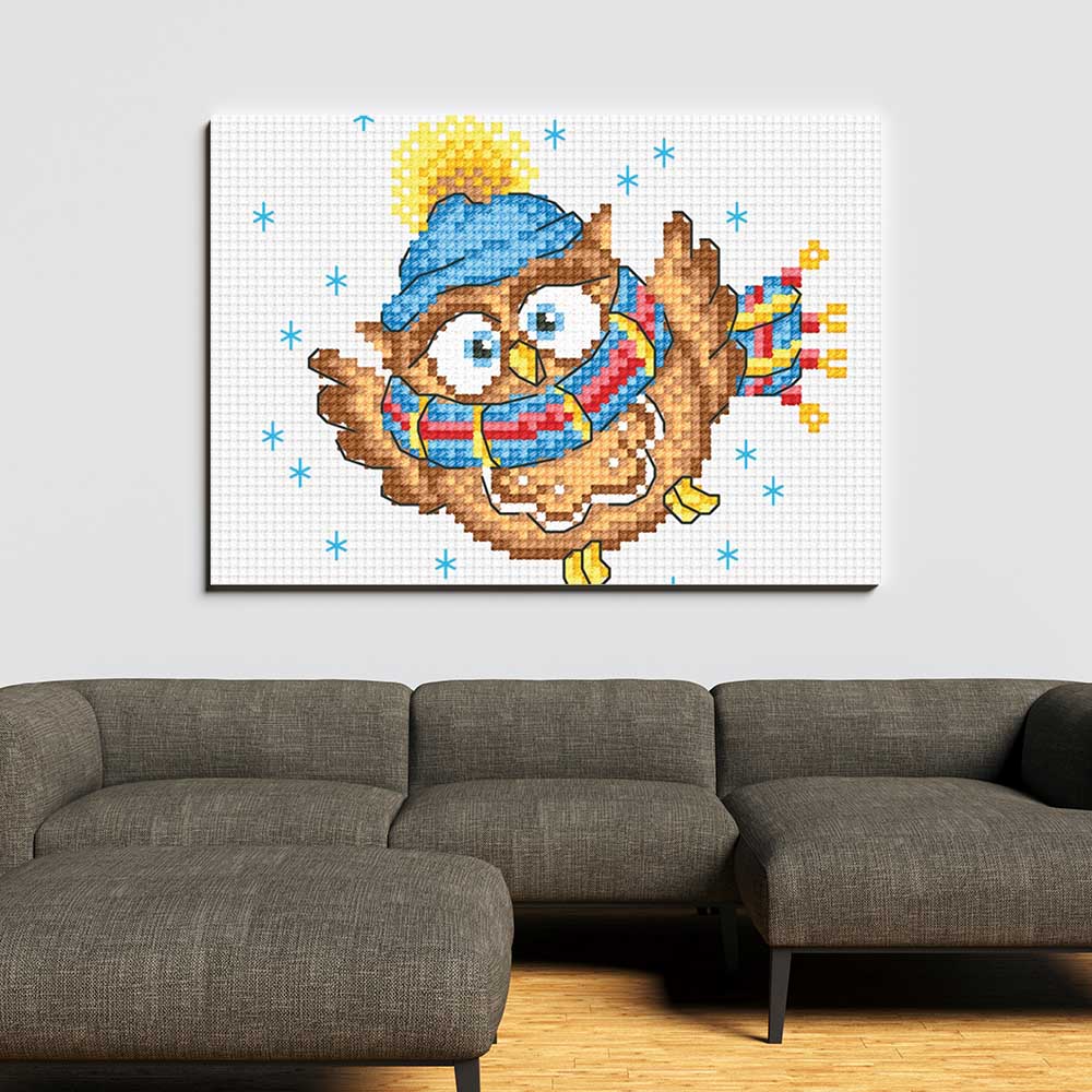Kreuzstich - Eule | 15x15 cm - Diy - Fadenkunst
