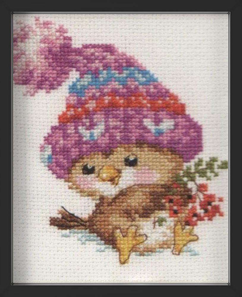 Kreuzstich - Kleiner Spatz | 15x15 cm - Diy - Fadenkunst