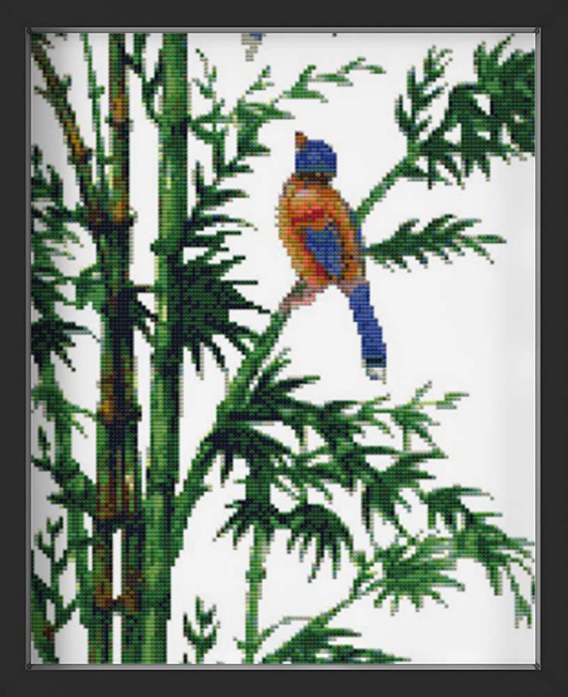 Kreuzstich - Vogel auf Bambus | 30x80 cm - Diy - Fadenkunst