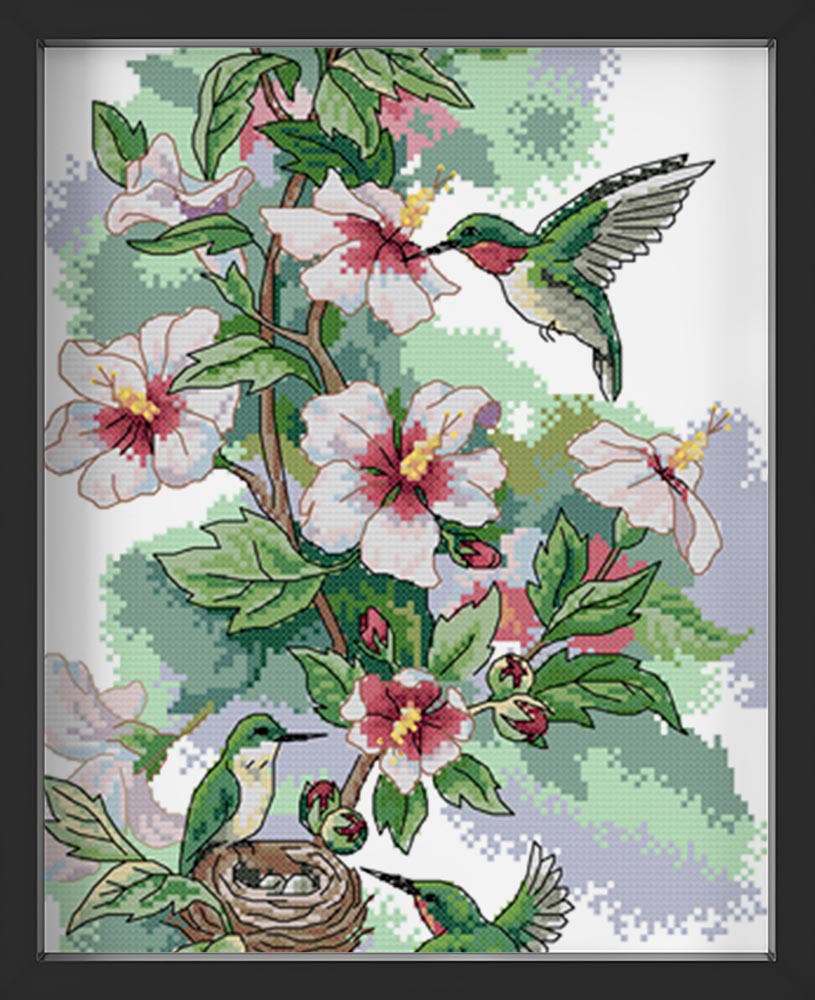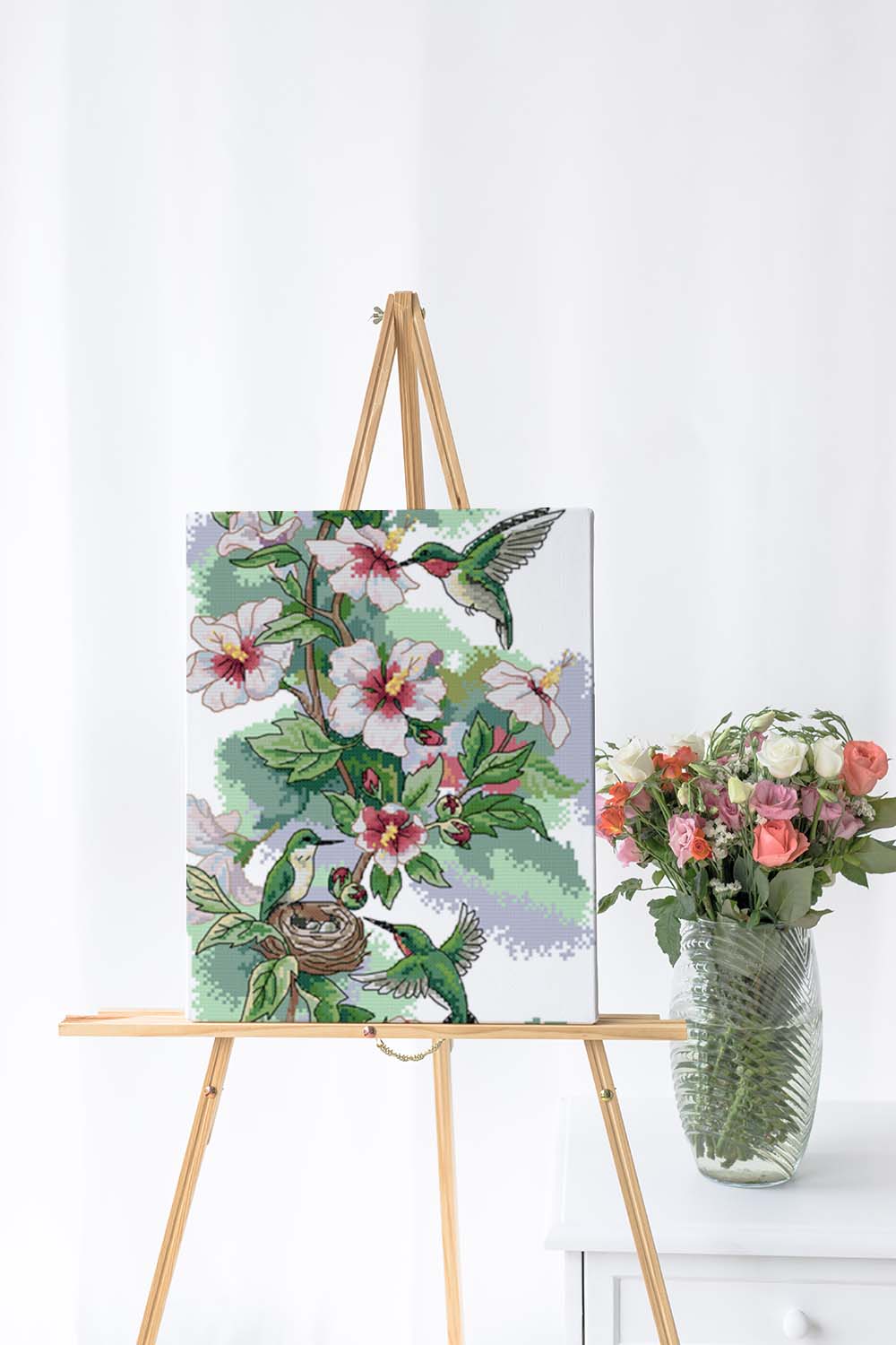 Kreuzstich - Vögel im Nest | 30x50 cm - Diy - Fadenkunst