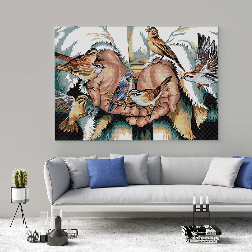 Kreuzstich - Vogelhand | 50x30 cm - Diy - Fadenkunst