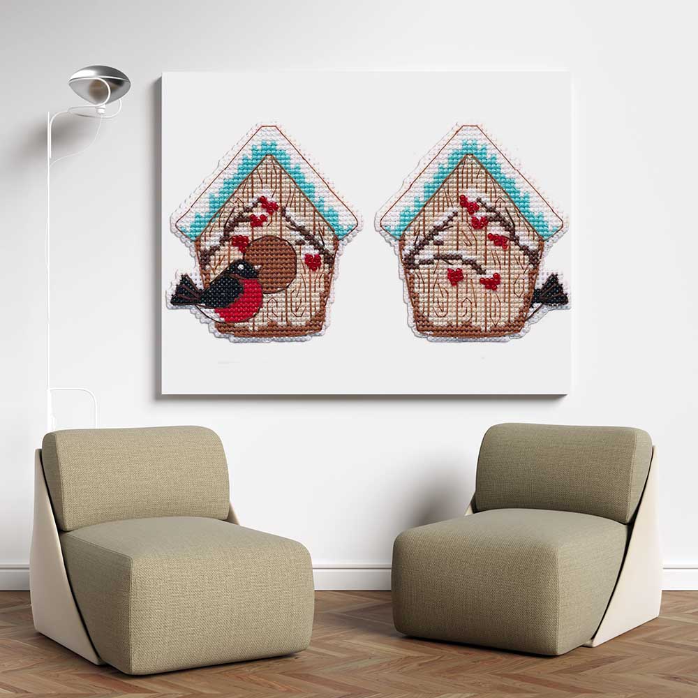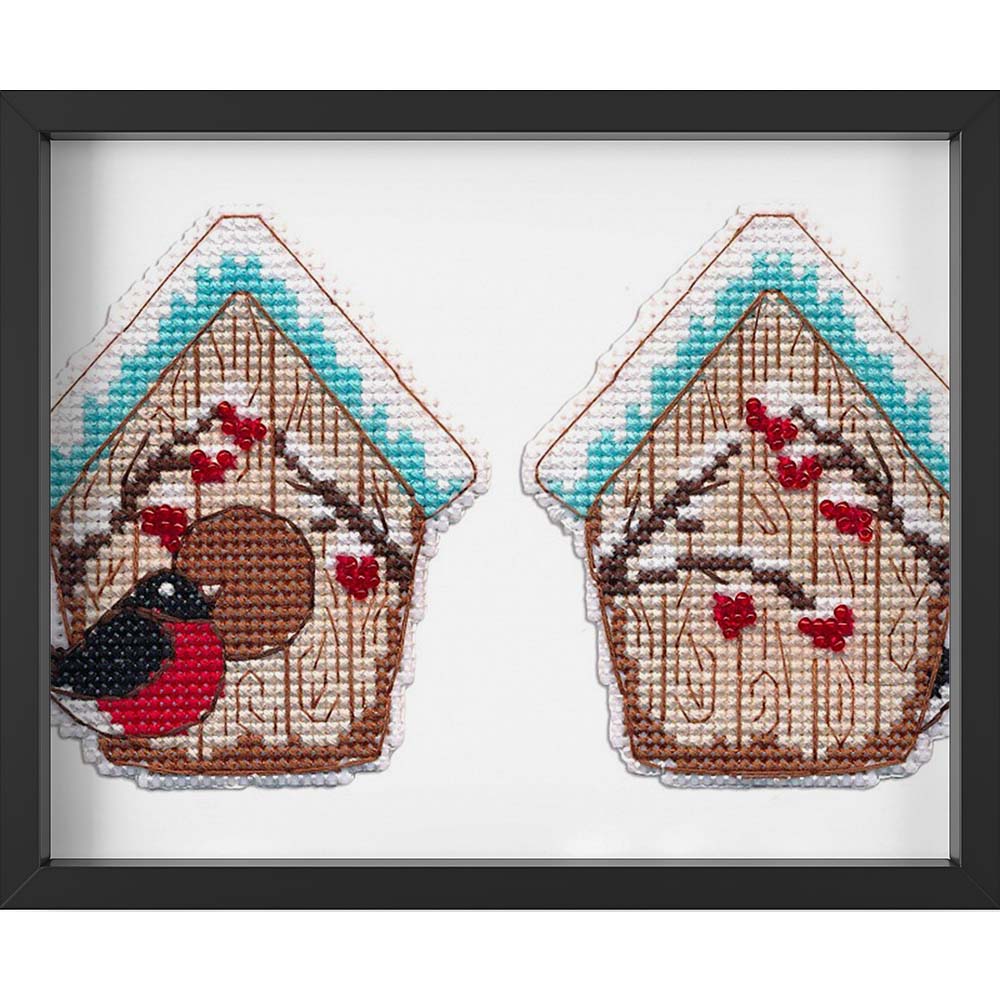 Kreuzstich - Weihnachtsspielzeug - Vogelhaus | 10x10 cm - Diy - Fadenkunst