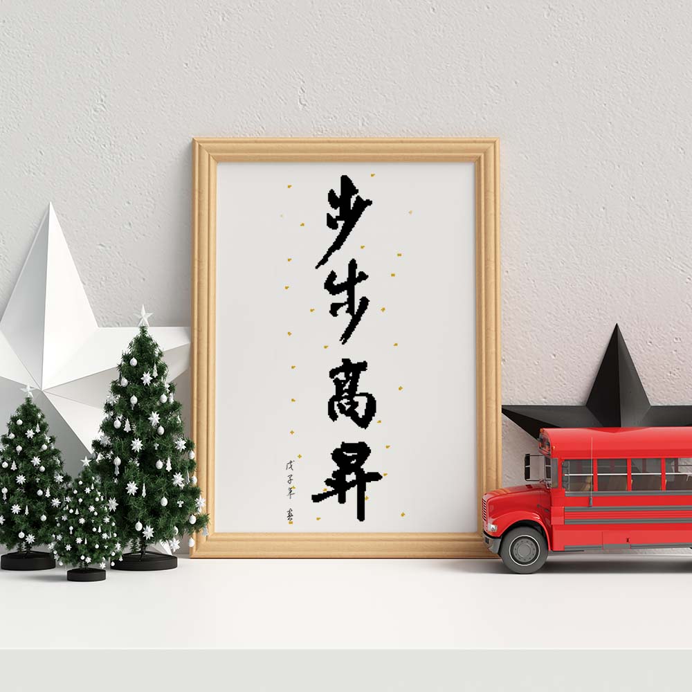 Kreuzstich - Chinesische Schriftzeichen mit Punkten | 30x60 cm - Diy - Fadenkunst