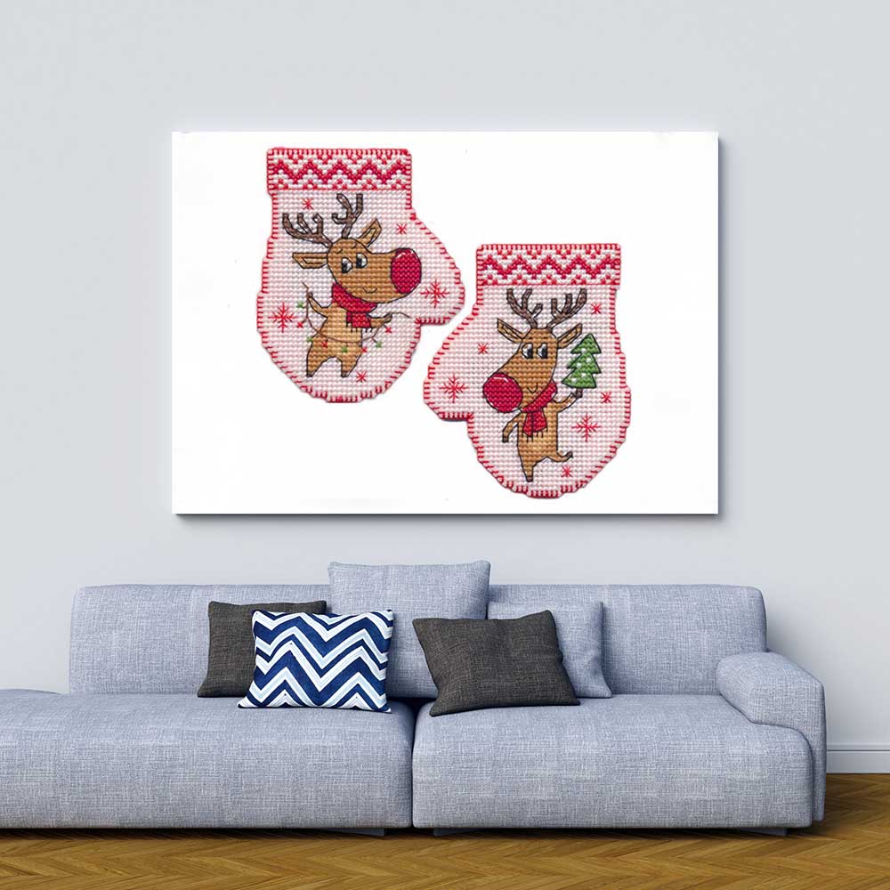 Kreuzstich - Fausthandschuh - Hirsch  | 10x10 cm - Diy - Fadenkunst