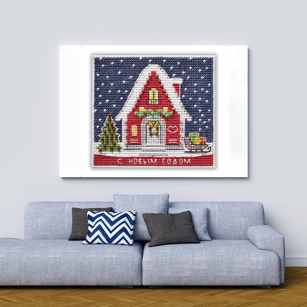 Kreuzstich - Magnet - Schwein mit Weihnachtsbaum | 15x20 cm - Diy - Fadenkunst