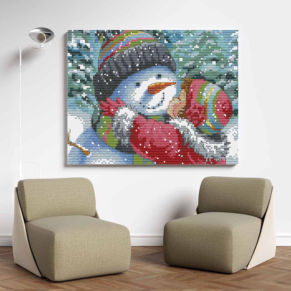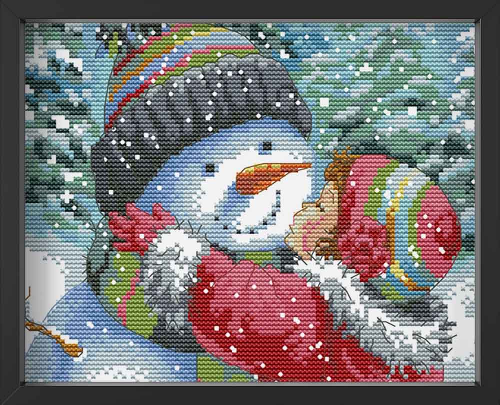 Kreuzstich - Schneemann mit Kind | 20x20 cm - Diy - Fadenkunst