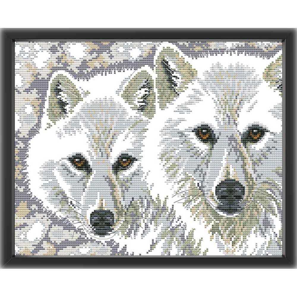 Kreuzstich - Zwei Schneewölfe | 40x30 cm - Diy - Fadenkunst