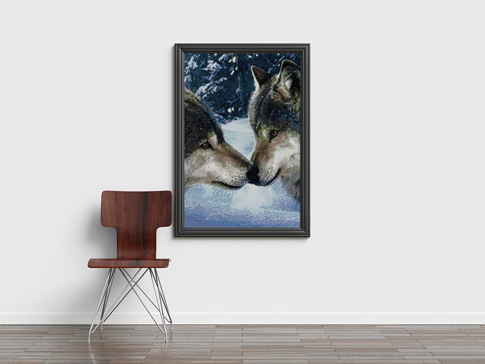 Kreuzstich - Zwei Wölfe im Schnee | 45x45 cm - Diy - Fadenkunst