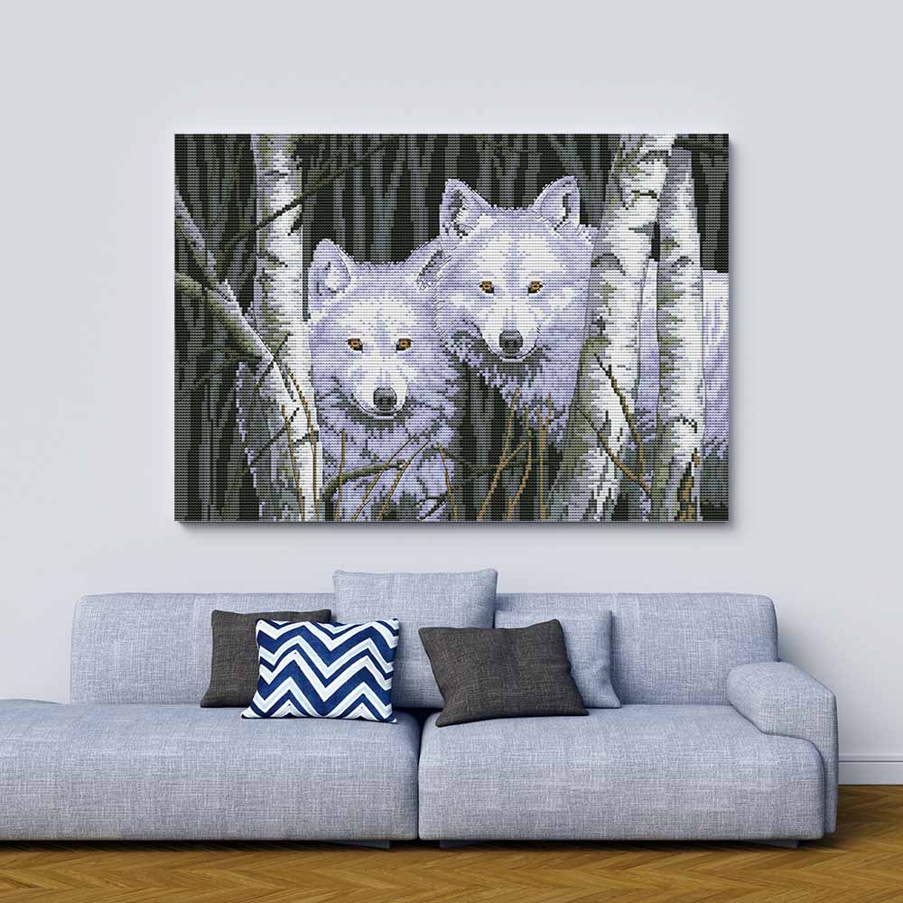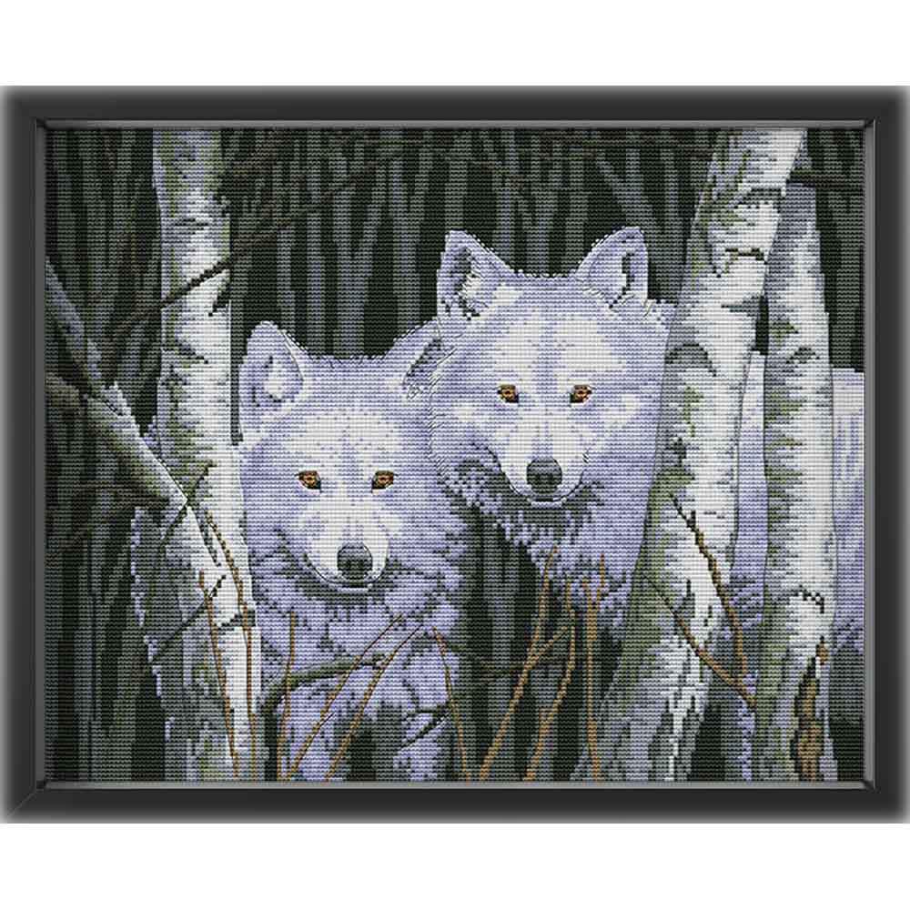 Kreuzstich - Zwei Wölfe im Wald | 45x35 cm - Diy - Fadenkunst