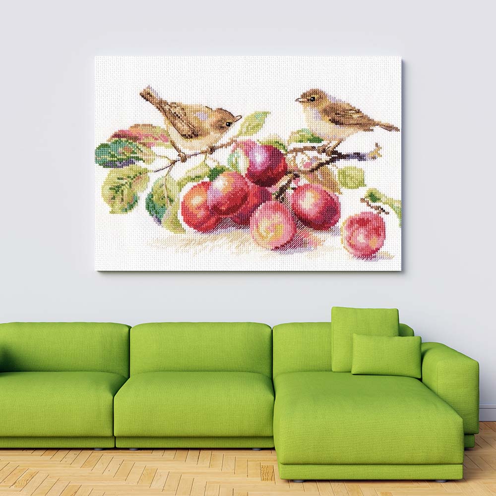 Kreuzstich - Grasmücken und Pflaumen | 30x20 cm